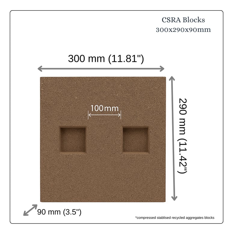 CSRA Blocks are sustainable masonry units manufactured using recycled construction & demolition waste, offering strength, durability, and precision for modern construction.